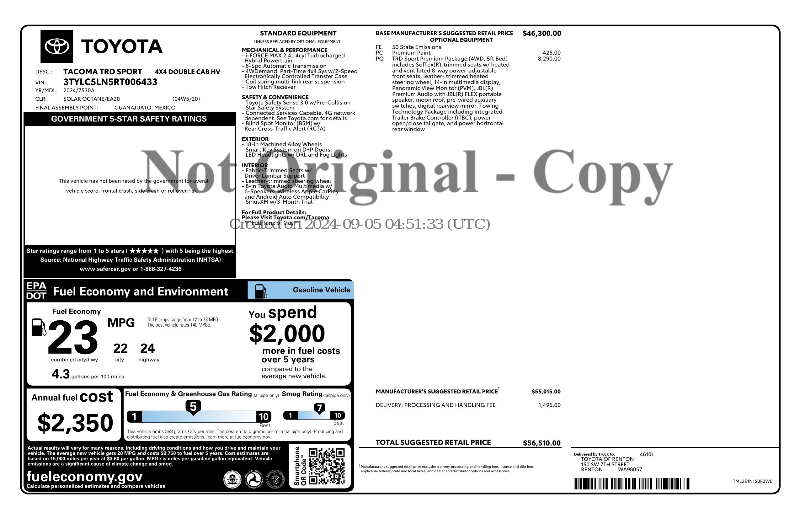 **MANUFACTURER BUYBACK with WARRANTY** TACOMA HYBRID TRD SPORT PREMIUM 4X4 with EVERYTHING!!