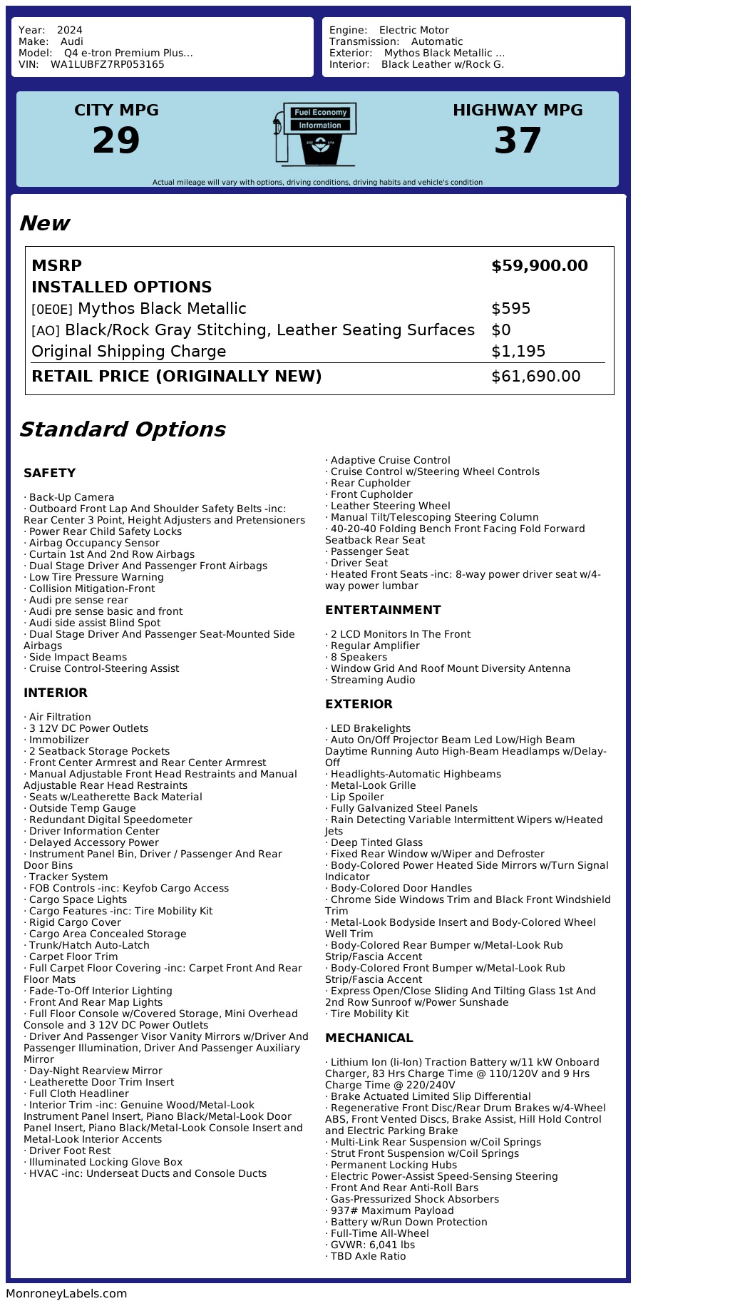**MANUFACTURER BUYBACK with WARRANTY** Q4 ETRON PREMIUM PLUS AWD with LOW LOW LOW MILES!!