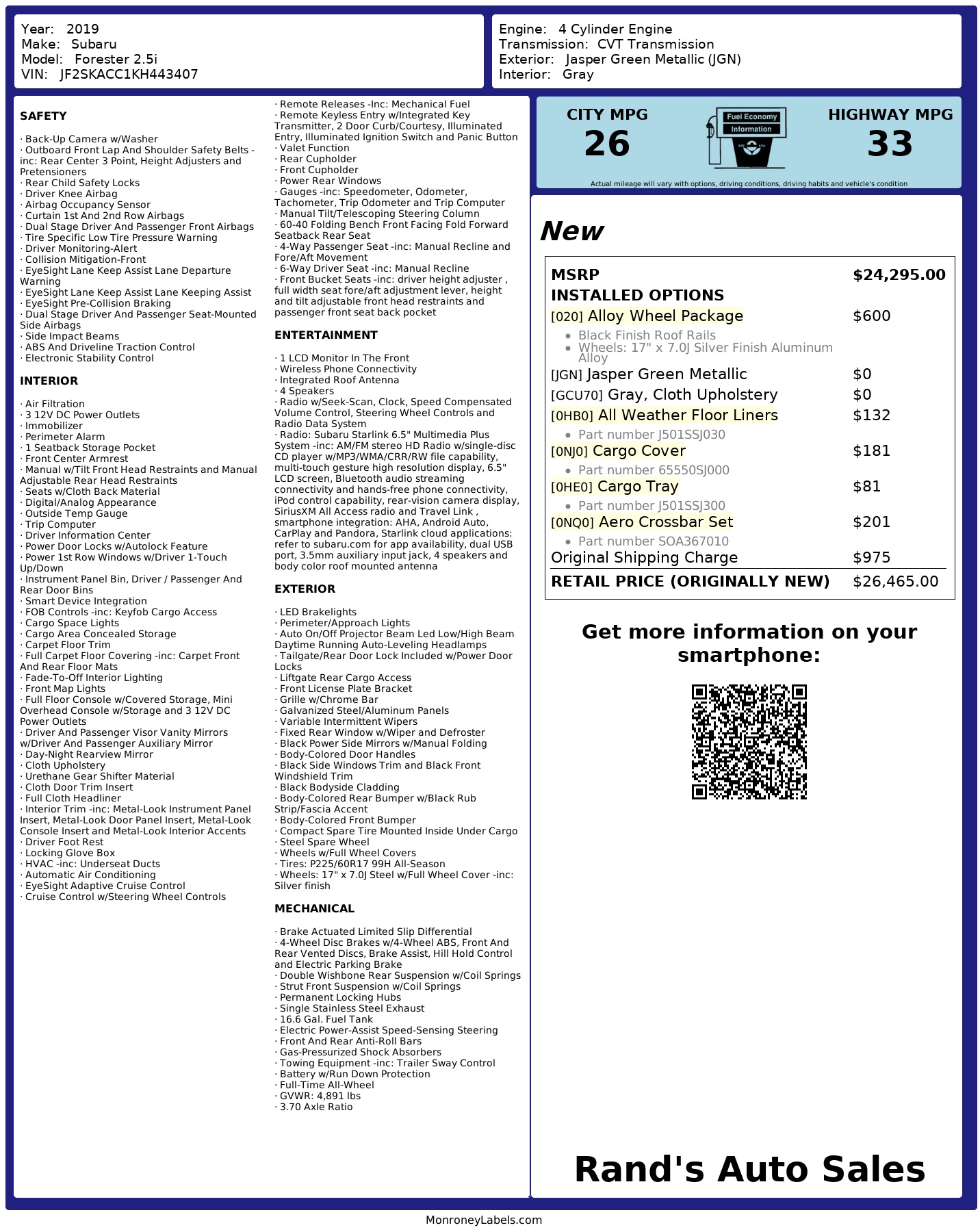 Vehicle Options: