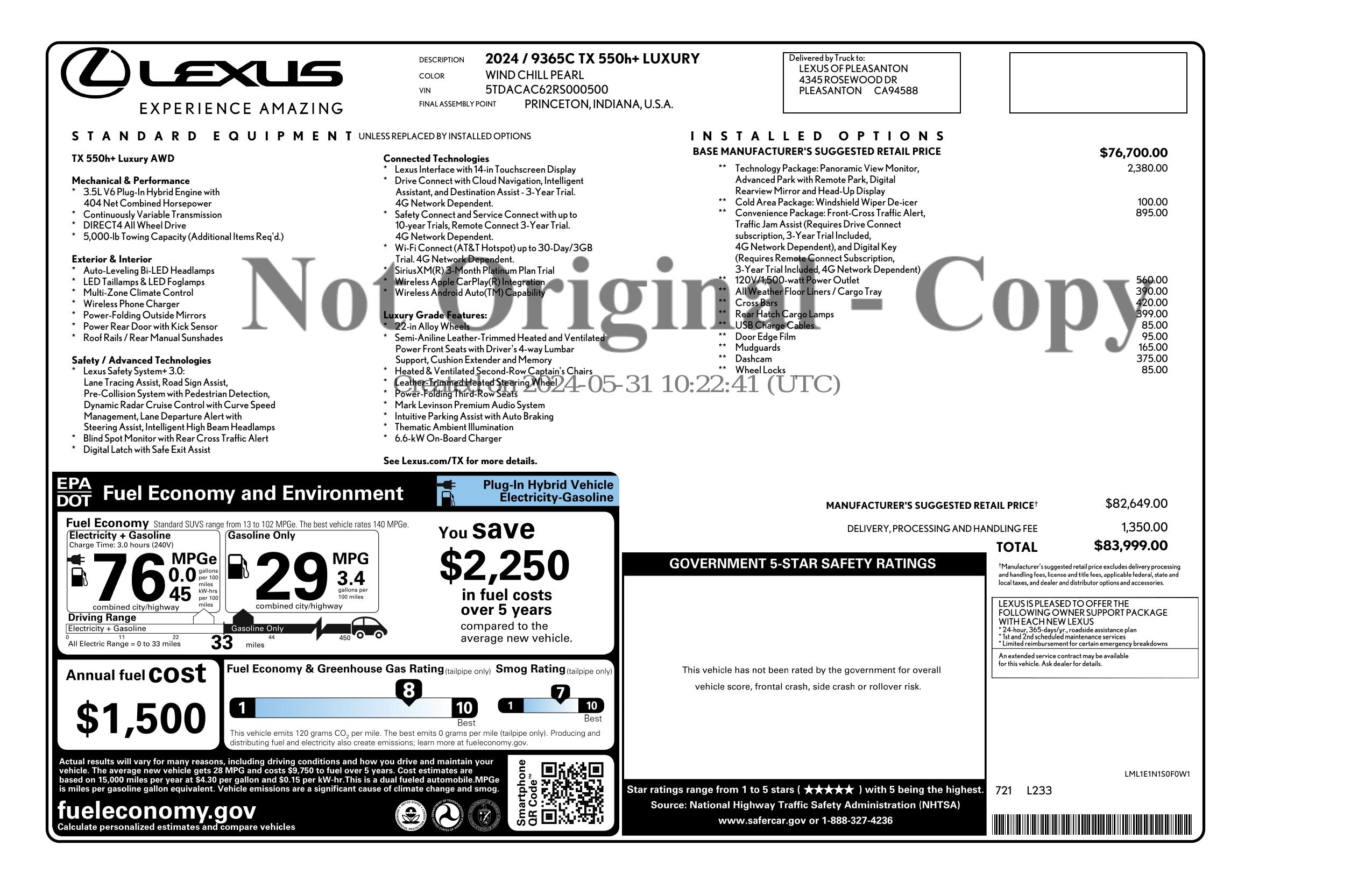 **MANUFACTURER BUYBACK with WARRANTY** 2024 LEXUS TX 550h Luxury PLUG IN Hybrid, with the 3.5 liter V6 and 404 horsepower LOADED!