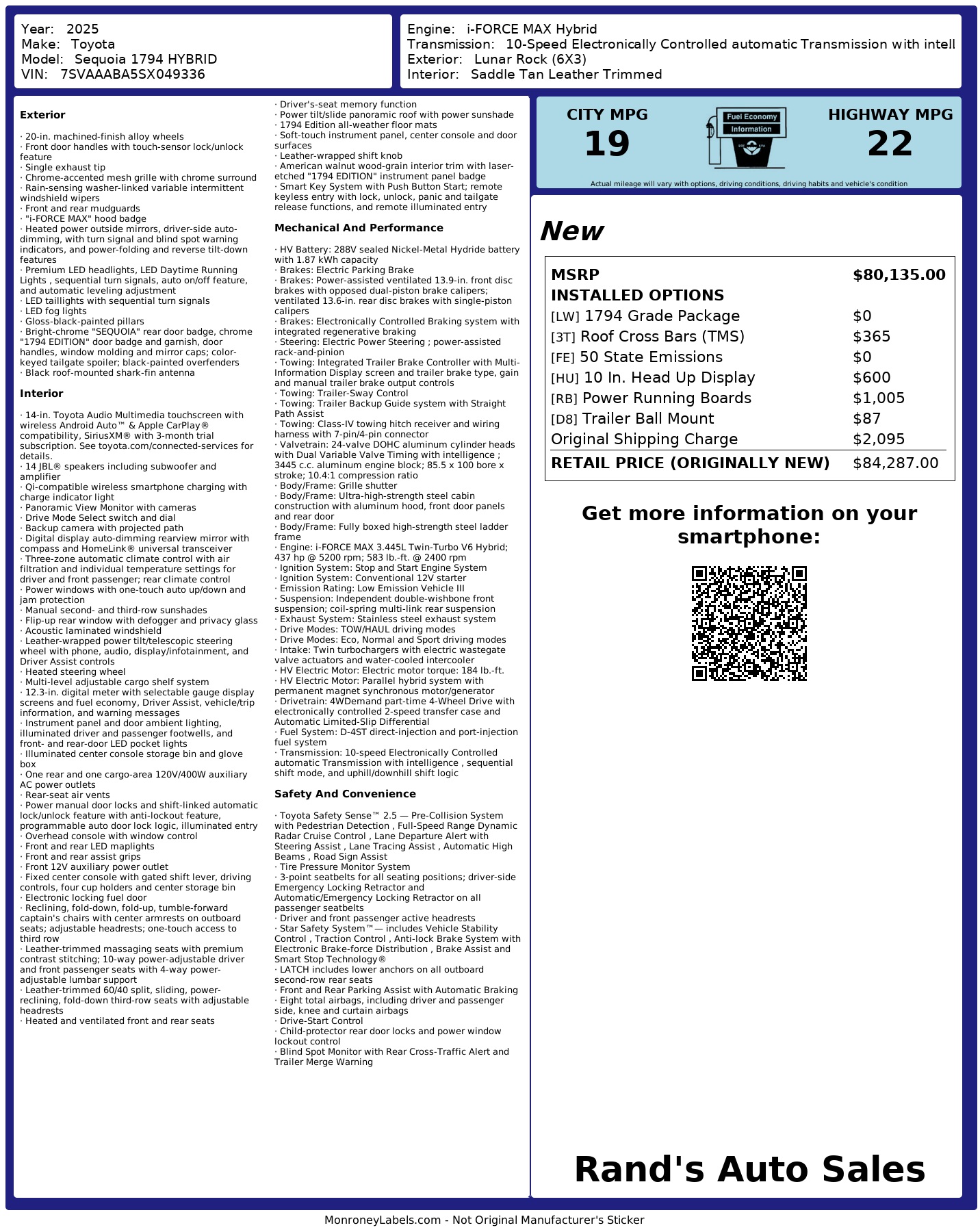 **MANUFACTURER BUYBACK with WARRANTY** 2025 TOYOTA SEQUOIA 1794 EDITION 4WD HYBRID with Head Up Display, Saddle leather interior, Heated and Cooled Seats, LOADED - LIKE NEW