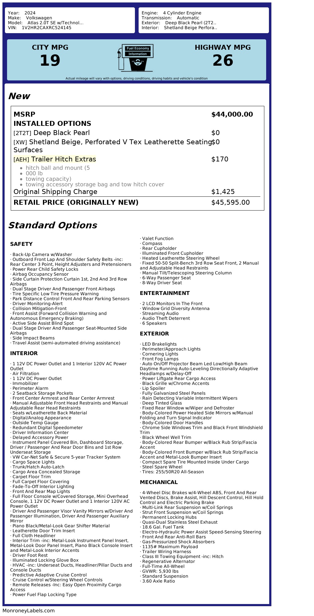 Vehicle Options: